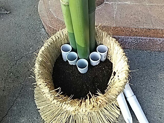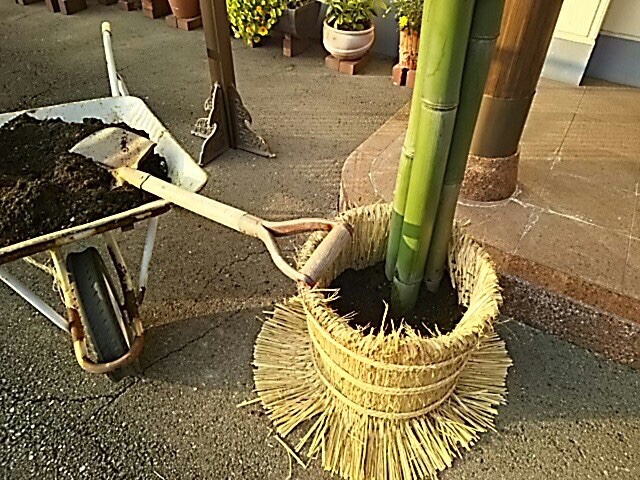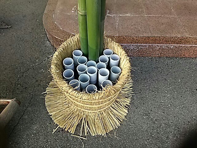【門松】の真ん中に立てる竹は、日蓮正宗では、日目上人の紋を【松竹梅】に定め、松は永遠常住、常緑。竹は真っ直ぐ天に向かい延び、上下、師弟の節目を守る。梅の様に薫り高く、天下に妙法の香りを伝える信仰。を、表現している、竹の姿を写したものであります。
