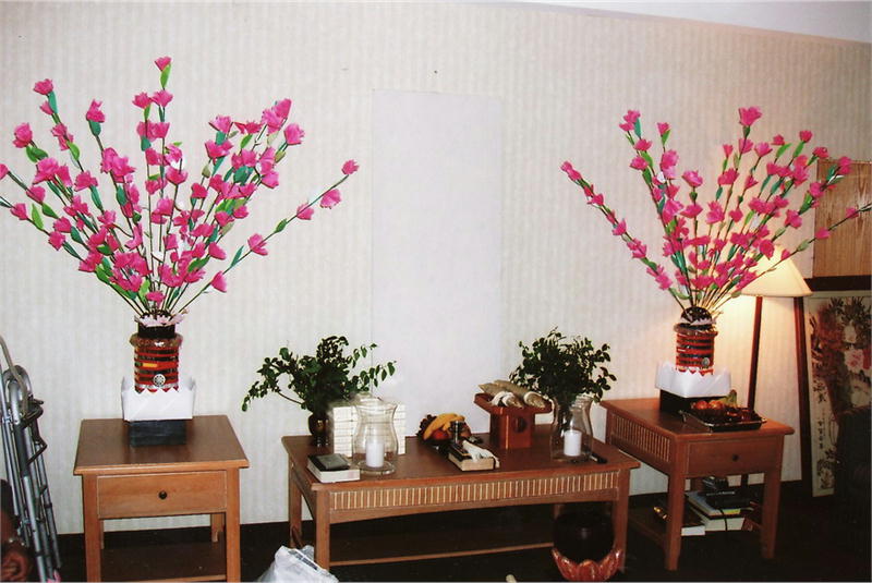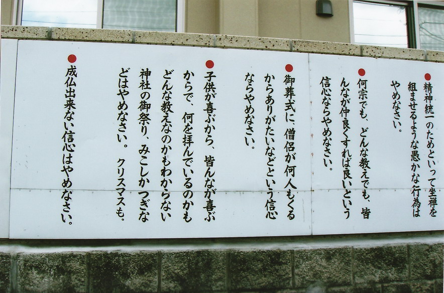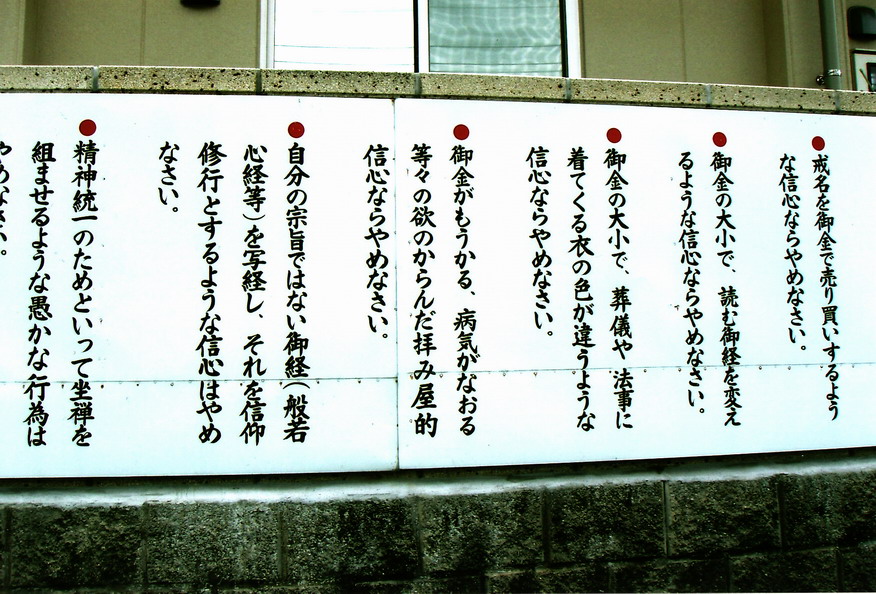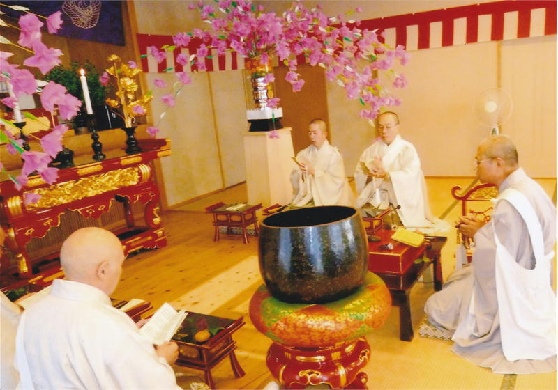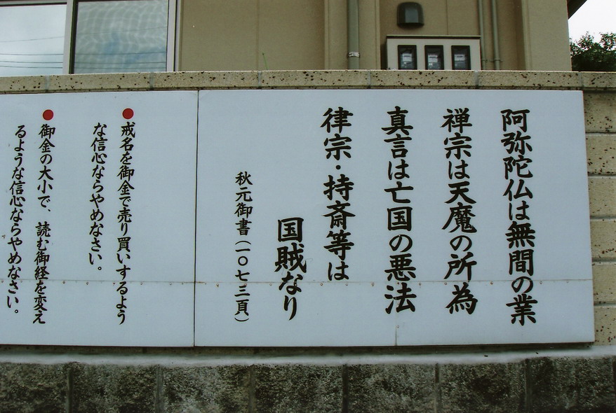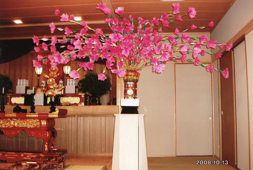 私は、平成11年の末まで、不明にして、この意味を知りませんでした。この意味を知った以上は、権力者が一年の始まりを自分の欲望と怨念で汚しても平気な形態は取りたくない。日蓮大聖人様の「正月の一日は日のはじめ、月の始め、年のはじめ、春の始め、此れをもてなす人は月の西より東をさしてみつがごとく、日の東より西へわたりてあきらかなるがごとく、徳もまさり、人にも愛され候なり。」森羅万象の源である久遠元初本因妙一念三千の法を祝うというと考えを中心にすれば、ささやかでも、三寶院から止めようと考え、平成12年の正月の【門樒】から今迄何も知らないで行っていた「そぎ切り」から「寸胴切り」の形に変えました。