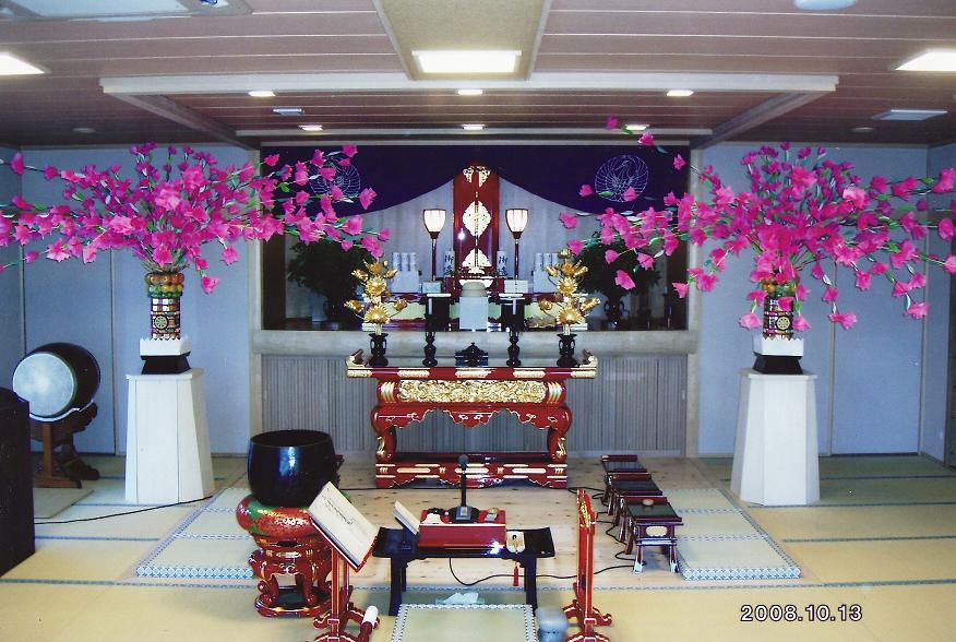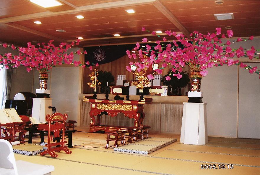 日蓮正宗では、諸天善神はいつでもどこでも常に存在し、法華経の行者を守護するという法華経の教えですので、一般の年の初めに迎入れるという説には、当てはまりません。日蓮正宗で【門松】ではなく、【門樒】にするのは、信仰していない御寺の外にいる一般世間の人々に対して、ここに法華経の南無妙法蓮華経の本尊がまします事を示し、法華経守護の諸天善神もここに集っている事を示す為に飾るのであります。